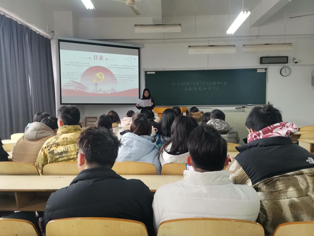 各班团支书对十九届六中全会的会议内容进行了介绍,特别是对《中共中央关于党的百年奋斗重大成就和历史经验的决议》进行了深入的解读和阐释。党的十九届六中全会是我们党百年华诞的重要时刻,是两个一百年奋斗目标历史交汇关键节点上召开的一次会议,在团会上,全体同学还着重学习了决议内容、关于总结党的百年奋斗重大历史成就与历史经验对工作的三个需要、共产党百年奋斗的历史意义等。大家纷纷表示,通过学习党的十九届六中全会精神,自己更为清晰地认识到党在推进中华民族伟大复兴历史进程中的重要作用,今后要更加紧密团结在以习近平同志为核心的党中央周围,以一往无前的奋斗姿态和永不懈怠的精神状态,为中华民族的伟大复兴贡献出自己的一份力量。